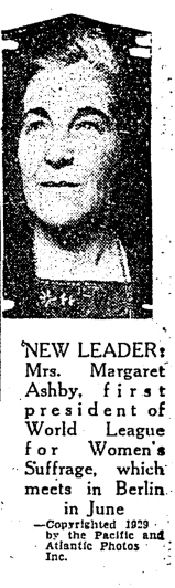 Margery Corbett Ashby (1882-1981) was involved in the women's suffrage movement starting in 1901, when she and her sister Cicely founded the Younger Suffragists. While I could find no reference to the World League for Women's Suffrage, Ms. Ashby became secretary of the National Union of Women's Suffrage Societies in 1907 and was President of the International Woman Suffrage Alliance from 1923 to 1946.