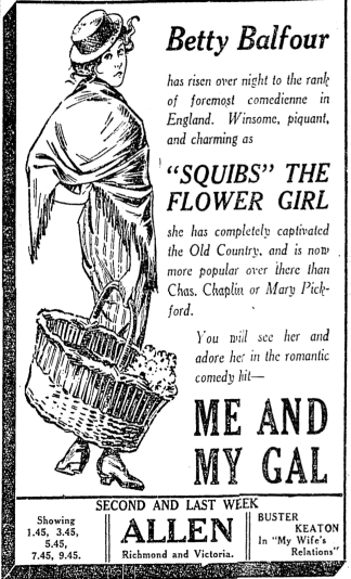 Here are two separate movie ads featuring Betty Balfour. The first is from the February 22 1923 edition of the Toronto Daily Star: