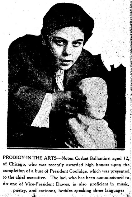 Unfortunately, a search turned up very little, other than that it revealed that his name was Noten Robert Ballantine. I found another photo of him from 1926 and an ancestry website that indicated that he had three half-siblings and that he passed away in 1959. He also apparently copyrighted a song in 1936, but I could find no other record of his artistic endeavours.