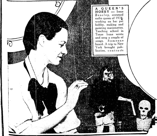 Irene Beasley (1904-1980) showed a talent for music early in life: she sang in Sunday school at the age of three and played piano by ear when she was four. She started her adult life as a teacher in Mississippi before becoming a singer and songwriter in the late 1920s. By the mid-1930s, she was performing regularly on first the CBS and then the NBC radio networks.
