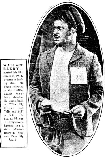 Wallace Beery (1885-1949) was not only one of Hollywood's highest-paid stars at the time of this photograph - he might have been the highest-paid star, as his contract with MGM called for him to be paid $1 more than any other actor on contract with the studio. However, if his Wikipedia page is to be believed, he was a horrible person (possible trigger warnings ahead):