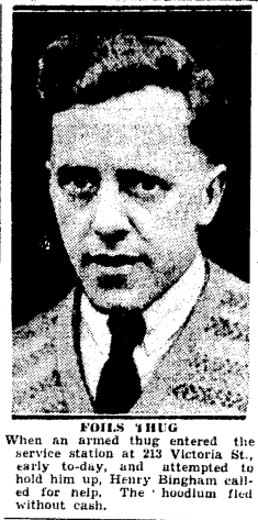 The 1932 directory does list a Henry Bingham who was working as a carpenter and living in Scarborough. If this was the same man, I don't blame him for moving far away from gas stations and thugs with guns. He wasn't in the 1935 directory, which I checked at random, so perhaps he just wandered on down the road somewhere.