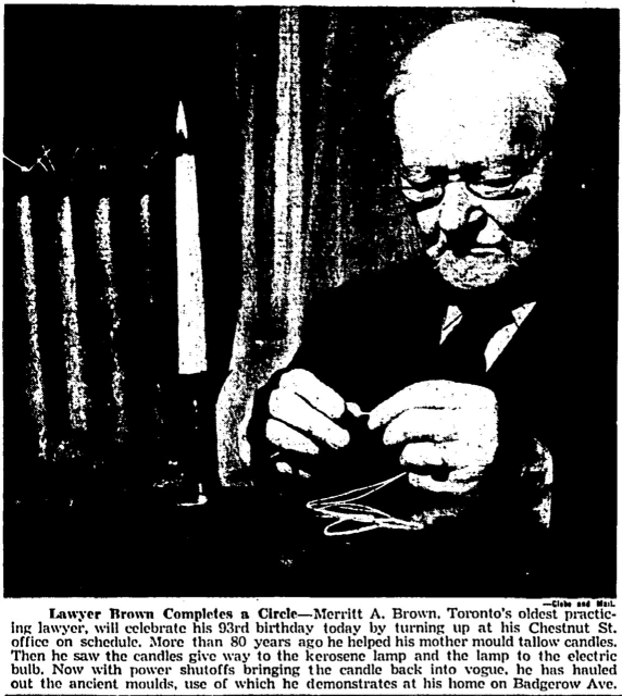 This photo shows Toronto's oldest practicing lawyer at that time. Mr. Brown would have been born in 1855, making him 12 years older than the country he was living in.