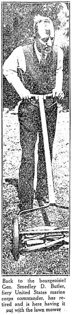 His retirement had just started a few days before this photograph was taken, and was hastened when he revealed that Italian dictator Benito Mussolini had allegedly struck and killed a child in a hit-and-run accident. When the Italian government protested, Butler was placed under arrest and was set to be court-martialed; eventually, he was just reprimanded.