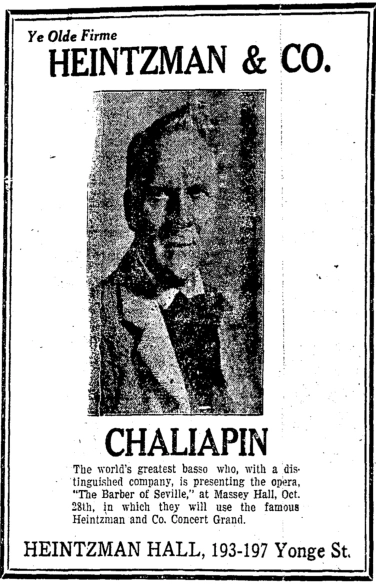 Feodor Chaliapin (1873-1938) was a Russian basso who often worked with composer Sergei Rachmaninoff. His signature role was the title role in Boris Gudanov. While based in Russia, he maintained two separate families, one in Moscow and one in St. Petersburg.