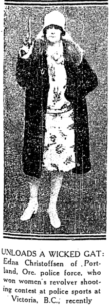 Shooting was a hobby of hers and she was good at it: in 1927, she placed second in an international police shooting competition and was the only female competitor at the event. In 1928, she became the founder and president of the Oregon Women's Revolver Club.