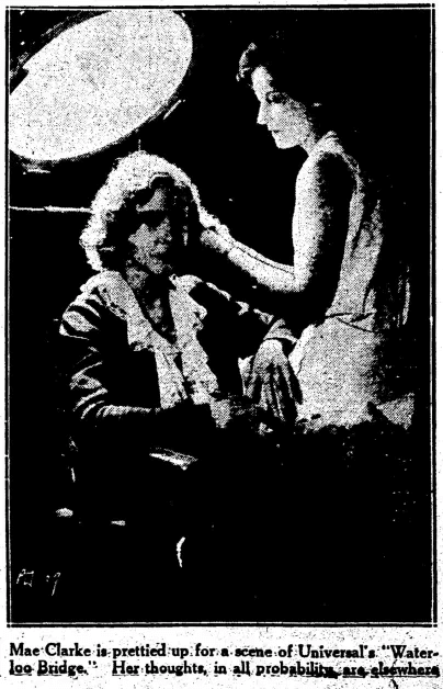 Waterloo Bridge, the film in which Ms. Clarke was working at the time of the above photograph, was controversial because Ms. Clarke was portraying a chorus girl who had turned to prostitution to support herself. Film censors in several cities demanded cuts before the film could be released; when the Motion Picture Production Code came into effect in 1934, the film could no longer be shown. The film remained hidden in studio vaults and was not screened again until the 1990s.