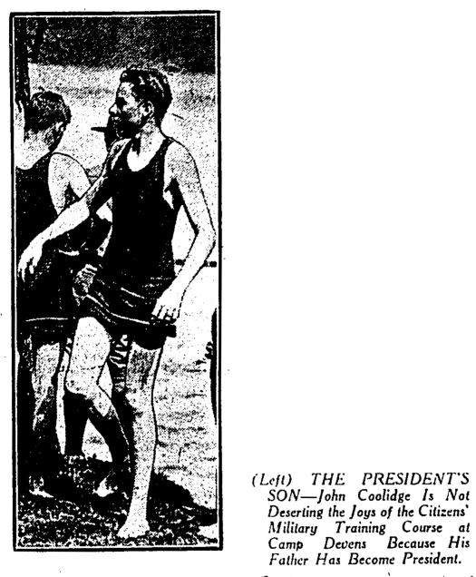 John Coolidge (1906-2000) was 16 at the time this photograph was taken. His brother, Calvin Jr., who was a year and a half younger, had less than a year to live: in July 1924, he died of blood poisoning brought on by an infected blister.