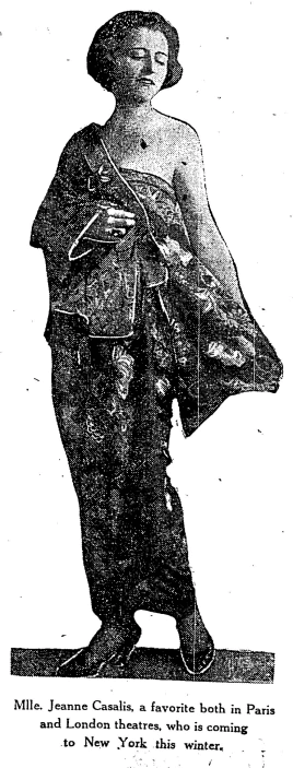 Jeanne de Casalis (1897-1966) was born in the British colony of Basutoland (now part of Lesotho) and was raised in France, where her father was a corset retailer. She was arriving in New York in 1922 to appear in The Tidings Brought To Mary, a play that appeared at the Garrick Theatre for 32 performances before closing in January 1923.