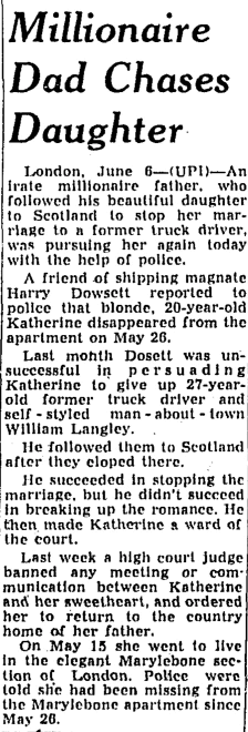 Edward Langley, described here as a former truck driver and elsewhere as a socialite. The couple attempted to elope but were tracked down before the marriage ceremony had been
