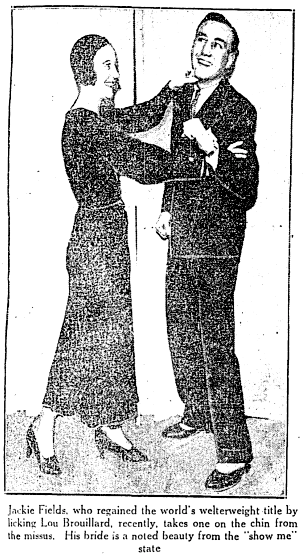 Jackie Fields (1908-1987), born Jacob Finkelstein, reached the peak of his boxing career when he regained the world welterweight title early in 1932. Later that year, he was in a car accident that damaged his left eye. In 1933, he lost his title and retired from boxing after losing a second bout that year.