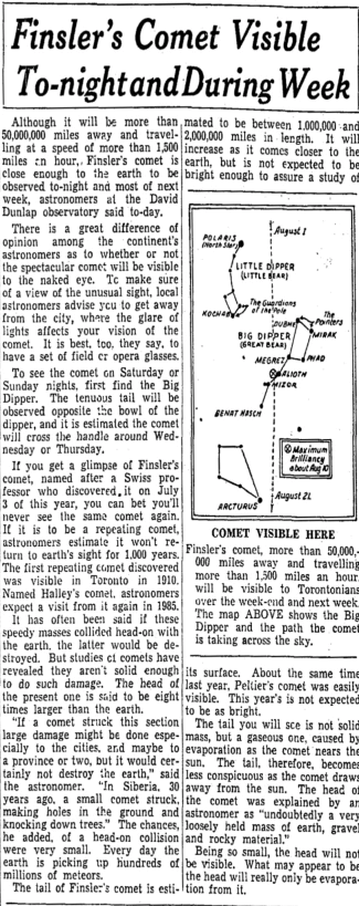 I found a number of articles and photos about Finsler's 1937 comet, including this photo. The article shown here estimates that the comet won't be visible again from Earth for another thousand years.