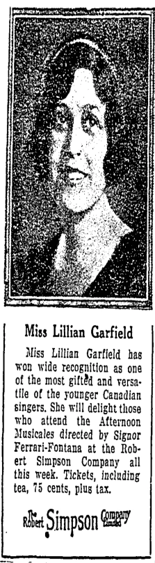 I did find a reference to Signor Ferrari-Fontana, though: Edoardo Ferrari-Fontana (1878-1936) was an Italian tenor whose career included singing at the Metropolitan Opera in 1914. He moved to Toronto in 1926. He must have thought, at times, that it was a long way, career-wise, from the Met to the Robert Simpson Company, Limited.