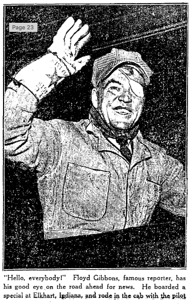 Floyd Gibbons (1887-1939) was a news reporter and commentator who became famous for his war correspondence during the First World War. He lost an eye in June 1918 after being hit by gunfire when trying to rescue an American Marine.