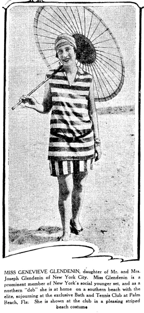 Searches for Genevieve Glendenin turned up references to other events that she attended starting in 1919, including this dinner dance hosted by William Randolph Hearst in 1928. She also appeared in Golf Illustrated magazine in 1922. Her father, Joseph Glendenin, is referenced in an edition of Mining and Engineering World in 1908 (at least, I assume this is him).