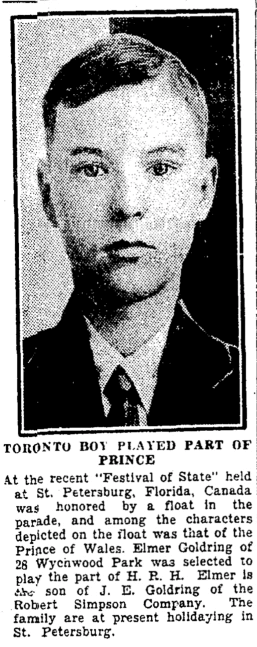 Here's a photo from the March 16 1928 edition of the Toronto Daily Star of a well-dressed young boy who was asked to play the part of the Prince of Wales in a parade in St. Petersburg, Florida.