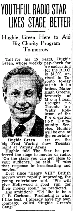 Hughie Green (1920-1997) had a long and sometimes controversial career in radio and television. Before the Second World War, he toured extensively and appeared in movies and cabaret, taking time out to become a father at the age of 17. When war broke out, Green was in North America; he became a pilot with the Royal Canadian Air Force and later a transport and stunt pilot.