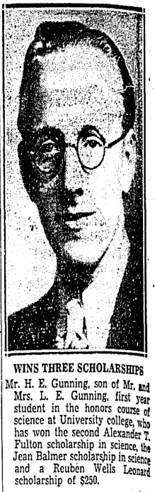 Harry Gunning (1916-2002) went on to earn a Ph.D. in physical chemistry. After teaching in the U.S. for a while, he was appointed the head of the department of chemistry at the University of Alberta in 1957. He was president of the university from 1974 to 1979.
