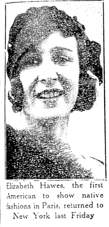 Elizabeth Hawes (1903-1971) started her fashion career working at a dress shop in Paris that sold illegal copies of the latest designs. In 1926, she became a fashion correspondent and columnist for The New Yorker. In 1928, she moved over to designing clothes, working for a firm in Paris before moving to New York to start her own firm.
