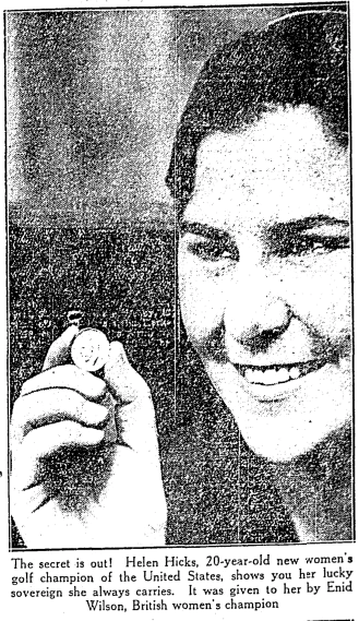 Helen Hicks (1911-1974) had just won the U.S. women's amateur championship, beating Glenna Collett Vare in the final. Two years later, she reached the final again, but lost. She also won the Canadian women's amateur championship in 1929.