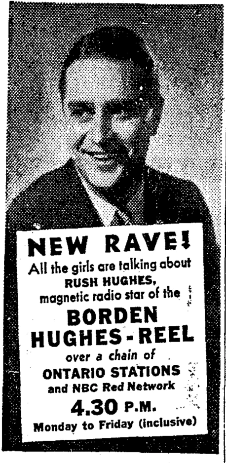 A search for Borden Hughes-Reel turned up nothing, but a search on his name revealed that Hughes was a commentator on the NBC Red radio network. His commentaries were pre-recorded and delivered to subscribing radio stations, which is probably what the ad was for.
