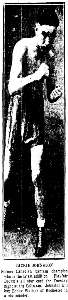 Jackie Johnston (1905-1990) was slated to compete for Canada in the 1924 Olympic Games but was disqualified because he was two pounds overweight. He was quoted as saying that he ate too much on the trip over to Paris but had a good time. After he left boxing, he ran a wine store, because why not?