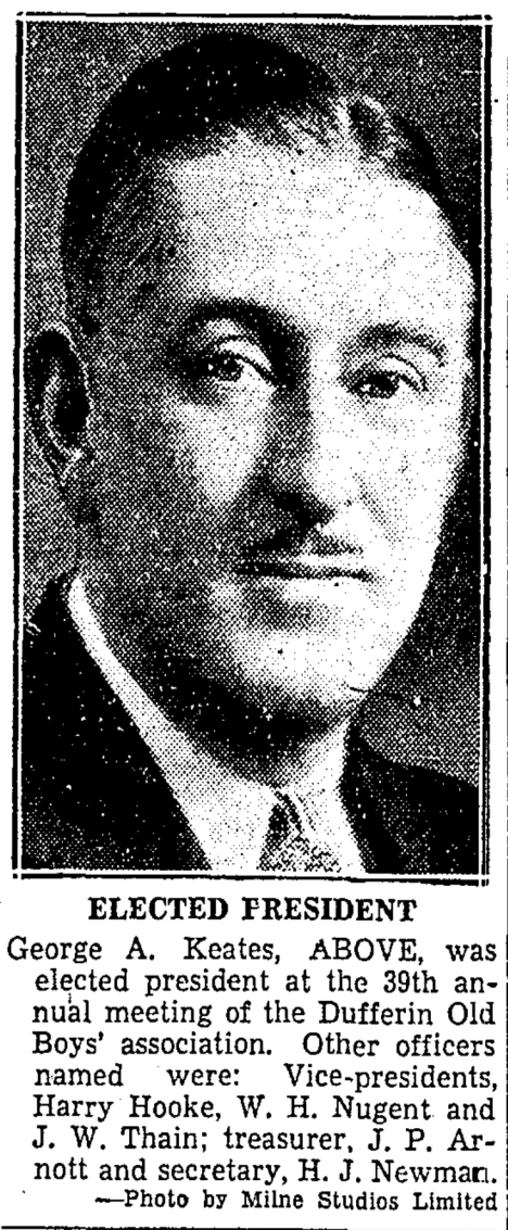 Because I was curious, I looked up George A. Keates in the Toronto city directories. The 1938 directory lists him as working as the assistant treasurer at Terminal Warehouses Limited. By 1944, he had become the division manager there, but he is not listed in the 1945 directory. This directory doesn't list his widow, so I have no idea whether he passed away or moved elsewhere.