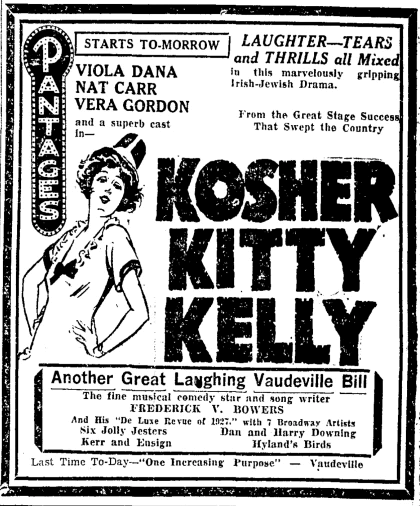 The same edition had an ad for the film version of the musical Kosher Kitty Kelly, which is apparently unrelated: