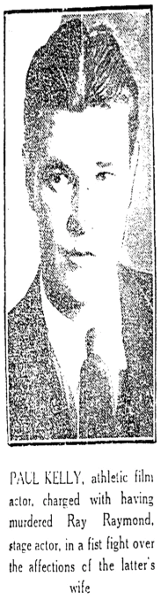 Paul Kelly (1899-1956) started his career as a child actor, appearing in starring roles in Vitagraph silent films starting in 1911. He was convicted of manslaughter in the death of Ray Raymond after the two had gotten into a drunken argument over Kelly's affair with Raymond's wife, Dorothy Mackaye.