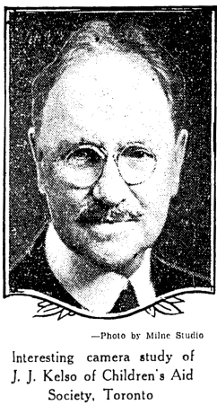 I looked up J. J. Kelso in the 1930 Toronto city directory. Not only was he there: his name was in bold face. He was listed as Superintendent Children's Aid Branch, Parliament Buildings, and his home address was 96 Albany Avenue.