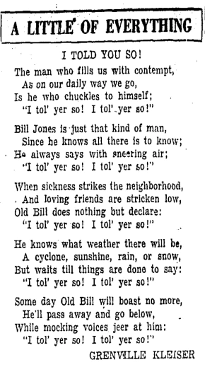 Back in the day, the Toronto Daily Star's editorial page always included a poem as part of its A Little Of Everything feature. Here's an example from the October 3 1932 edition: