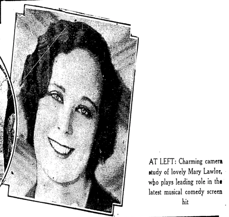 Mary Lawlor (1907-1977) had been appearing in Broadway shows since the age of 15, when she had a role in The Passing Show of 1922. She married baseball player Lyn Lary in 1931. (His nickname, probably uncoincidentally, was "Broadway".) Ms. Lawlor's stage career ended at about this time, which suggests that she gave it up to raise the child that the couple had together.