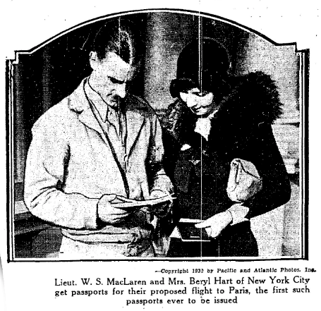 Lieutenant William S. MacLaren and Beryl Hart, who was a 27-year-old widow, were planning to be the first pilots to fly across the Atlantic Ocean in a plane containing cargo. On January 7 1931, they flew to Bermuda on the first leg of their journey, becoming the first pilots to fly there non-stop from the United States. They then took off on the second leg, heading for the Azores, but failed to make it.