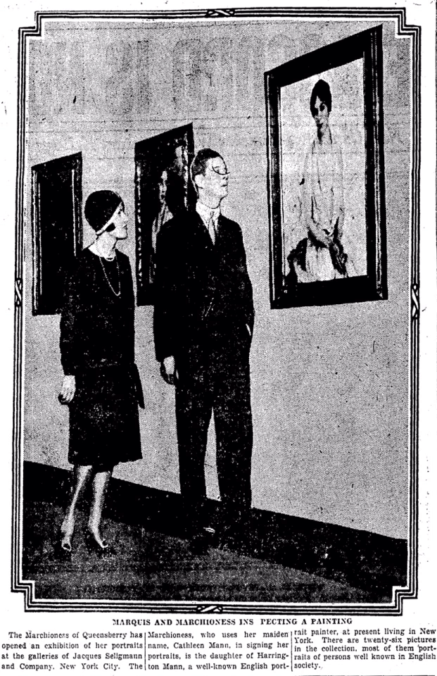 Cathleen Mann (1896-1959) had been the Marchioness of Queensberry for a little less than a year when this photo was taken. She went on to become a costume designer for a number of films between 1933 and 1937, and became an official war artist, painting portraits of Allied commanders. She and the Marquis divorced in 1946, and she committed suicide in 1959 following an attack of tuberculosis.