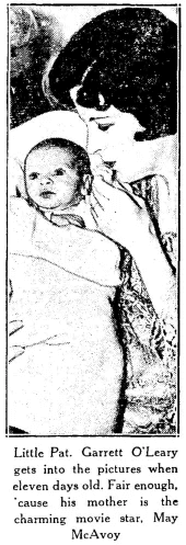 Ms. McAvoy retired from movies when she married Maurice J. Cleary, who is variously described as a Los Angeles banker and the treasurer of United Artists (he could well have been both). They divorced in 1940 and remarried in 1971; Patrick, shown above, was their only child. She appeared in some small, uncredited roles in movies in the 1940s.