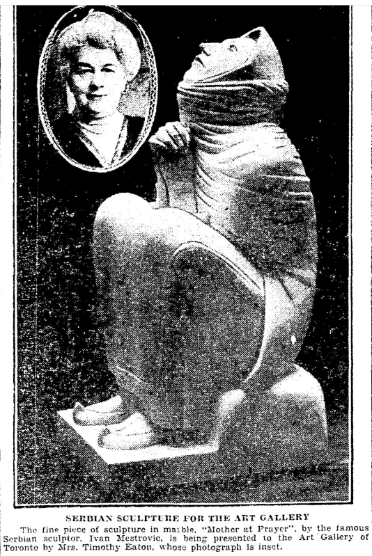 Mrs. Timothy Eaton had been a widow for over two decades when she presented this sculpture to the Art Gallery of Toronto, as her husband had passed away in 1907. The Art Gallery of Toronto was renamed the Art Gallery of Ontario in 1966.