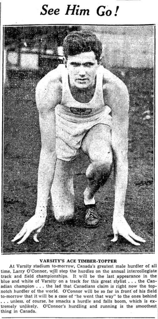 Larry O'Connor (1916-1995) finished sixth in the 110-metre hurdles in the 1936 Olympic Summer Games. He finished second in this event in the 1938 Commonwealth Games and set a Canadian record in the 110-metre hurdles in 1939 that stood until 1964.