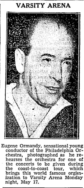 Eugene Ormandy (1899-1985) wasn't all that young when this photo appeared - he was 37, which I suppose might have been considered young in the music world. Born in Hungary, he was admitted to the Royal National Hungarian Academy of Music at the age of five as a violinist.