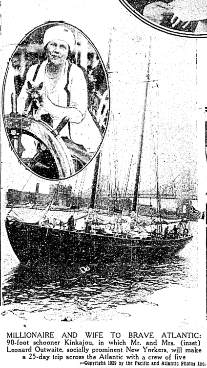 Saying that Leonard Outhwaite (1892-1978) was a millionaire and socially prominent New Yorker implied that he was something of a dilettante. He was actually an explorer, author, and anthropologist, so sailing the Atlantic was well within his skill set. His published works include The Atlantic; A History of An Ocean, which was republished in 2018. His papers are stored at the Rockefeller Archive Center.
