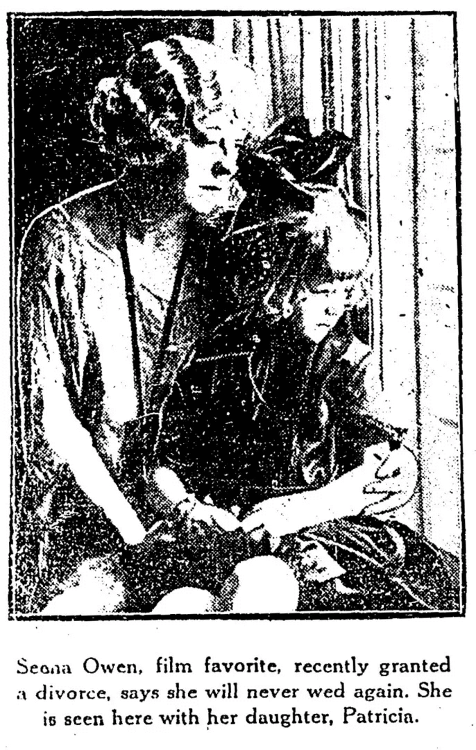 Ms. Owen appeared regularly in movies from 1915 to 1929. Her voice was too weak for sound, so she worked as a screenwriter on films through the 1930s and 1940s. (Her sister, Lillie Hayward, was a successful screenwriter for over forty years.) And, indeed, she never married again.