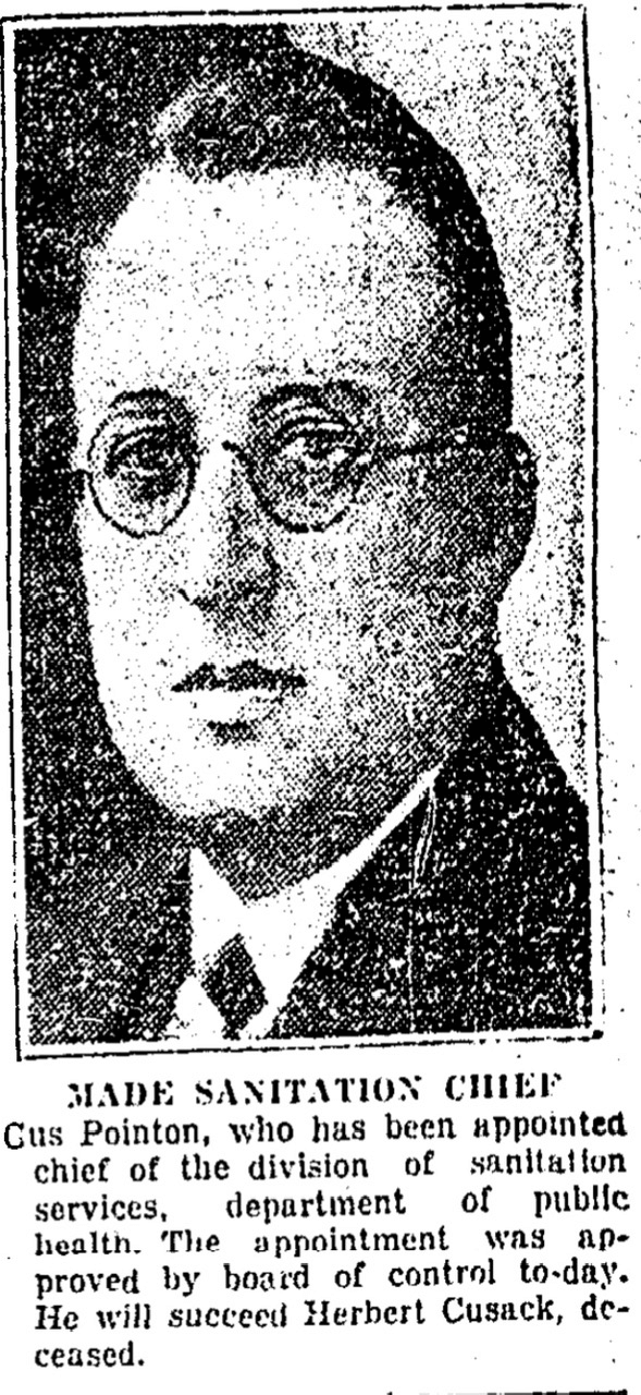 I traced Mr. Pointon in the Toronto city directories and discovered that he was the chief of sanitation services for exactly a quarter of a century, as he is listed as such in the 1954 city directory. He doesn't appear in a couple of directories after 1954, but does appear in the 1959 directory without an occupation, so presumably he was retired. I didn't trace him after that.