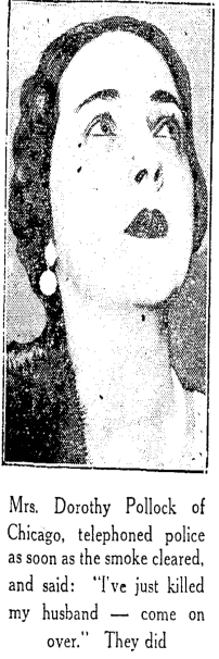 When I searched, I found very little on Mrs. Dorothy Pollock of Chicago. The only reference that I could locate was in a book titled Scarface Al and the Crime Crusaders: Chicago's Private War Against Capone, published in 2010. Page 168 of the book states that the former director of a crime laboratory established a sideshow at the Chicago World's Fair in 1933; the sideshow included Mrs. Pollock, who was billed as "Chicago's most beautiful murderess."