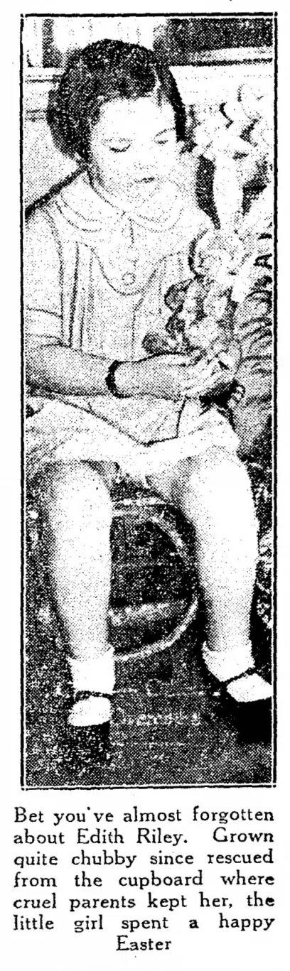 (Possible trigger warnings ahead.) A TIME magazine article from January 1932 told the horrible story of Edith Riley. She was a 12-year-old girl who had been kept in a windowless closet for four years and had been regularly beaten. She had been kept so hidden that boarders at the family's residence did not know that she existed. When she was finally rescued, she was so malnourished that her legs could not support her and she weighed only 38 pounds.