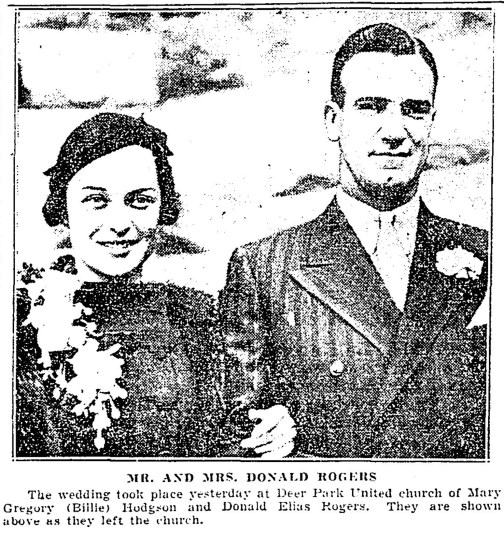 Donald Rogers doesn't appear in the Toronto city directories in the years immediately before he got married (though I did find him in the 1930 directory). He is listed in the 1935 directory as an assistant sales manager at the Alfred Rogers company, which was the cement part of Alfred Rogers' business empire. By 1939, he was the general manager there; by 1942, he was living in Aurora. The 1953 directory lists him as vice-president and general manager. Unfortunately, he passed away in March 1953 in Florida at the age of 46; I couldn't find details. He is buried in Mount Pleasant Cemetery. His wife outlived him by more than 40 years.