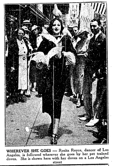 Rosita Royce (1913 or 1918-1954), born Marjorie Rose Corrington, was a burlesque dancer. Her specialty was a routine in which her trained birds gradually removed parts of her costume.