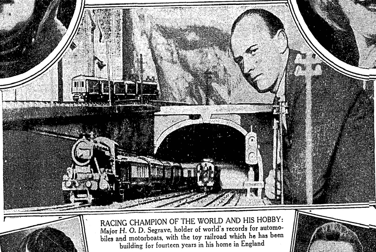 Within a year and a half of this photo being taken, Henry Seagrave (1896-1930) would be knighted for his accomplishments and would be killed when his boat crashed while attempting a new speed record. His Wikipedia page does not mention his model railroad, which he would have started when he was 18 and was about to fight in the First World War.