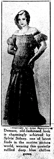 Sylvia Sidney (1910-1999) was just starting a career in movies and television that lasted until 1996, when she played Grandma Florence Norris in Mars Attacks!. In 1973, she was nominated for an Academy Award for Best Supporting Actress for Summer Wishes, Winter Dreams. She also appeared in the pilot episode of WKRP in Cincinnati.