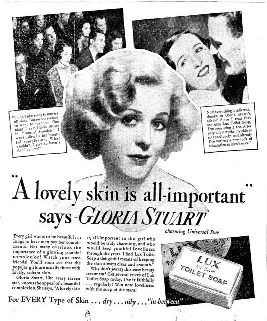 Gloria Stuart (1910-2010) had three successful careers. First, she was an actress. Then, after 1945, she became an artist, working as a fine printer; her work appears in the Los Angeles County Museum of Art and the Metropolitan Museum of Art. Lastly, she returned to acting again, appearing in Titanic in 1987 and appearing in movies up until 2004.