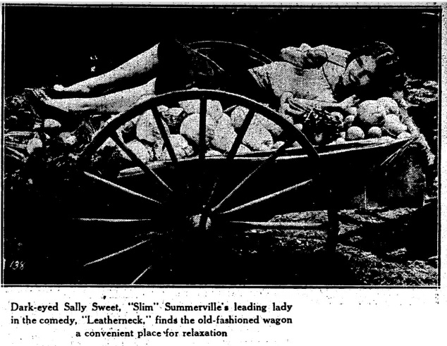 Sally Sweet (1914-1997) did not have an extensive enough career to have a Wikipedia entry, but she does appear in the Internet Movie Database. She appeared in only three film roles in the 1930s, the first of which was The Eyes Have It, a short film released in 1932. Since this film also starred Slim Summerville, I'm reasonably certain that this was "Leatherneck" renamed.