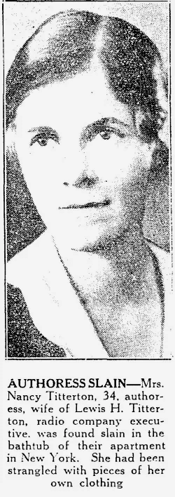 A search revealed several articles on Ms. Titterton's murder: a History Channel page, a post in the Ephemeral New York blog, and a New York Daily News article. At first, the crime looked like it would be difficult to solve, as the killer had left no fingerprints. But police found a 13-inch cord under her body in the bathtub and a single horsehair in the bedroom.